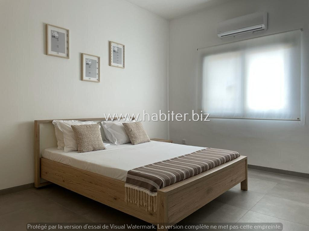 Appartement et studio meublés à louer au Virage comprenant 2 chambres avec une salle d’eau intérieure, une cuisine équipée, un espace familial, des WC visiteurs, un salon, toutes les pièces sont climatisées. Gardiennage 24H/24, wifi, canal.
