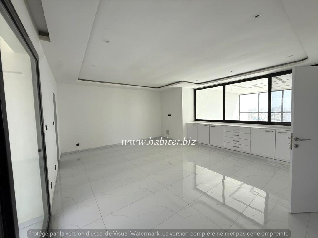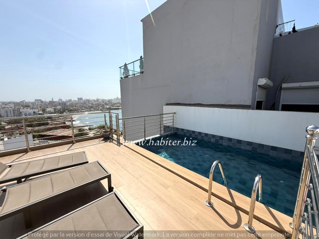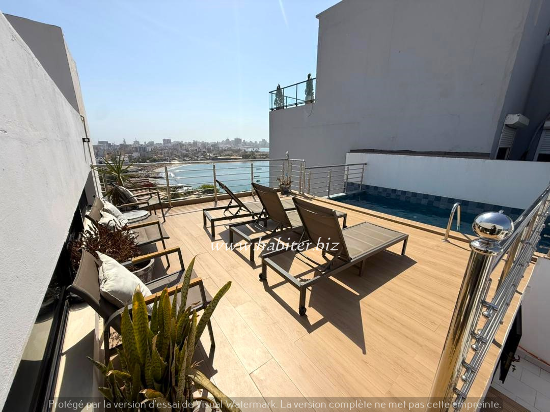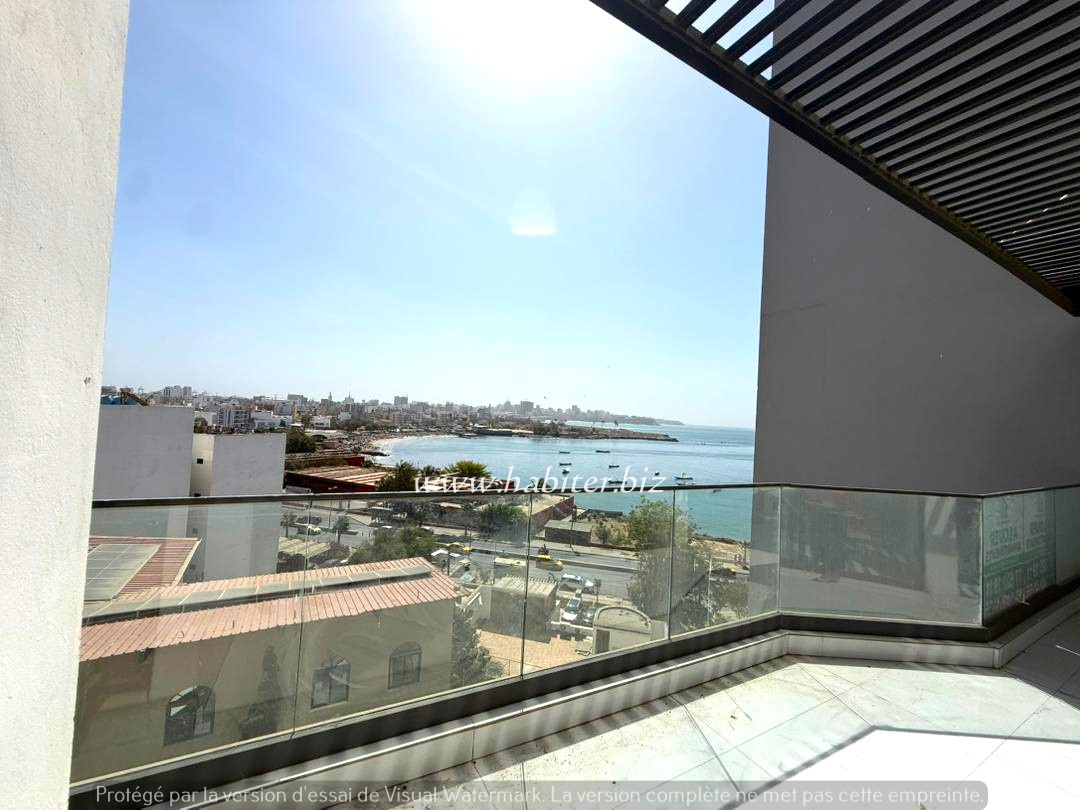 Duplex à louer à Fann Hock composé de 3 chambres avec placards incorporés et salle d’eau, un grand salon lumineux donnant une vue sur la mer, une cuisine semi-équipée, un WC visiteurs, un balcon.
