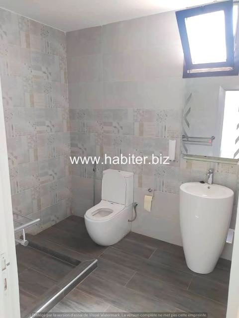 Villa R+2 à louer à Sacré coeur 3 composée au rez-de-chaussée : un garage, une petite cour avant, une cuisine, un patio et WC visiteurs. Au 1er étage 3 chambres avec salles de bains attenantes, placards, Petit espace, un salon. Au 2ème étage : un grand salon, une toilette, un balcon. Une terrasse composée d’une chambre + salle d’eau, une cuisine et une Buanderie.